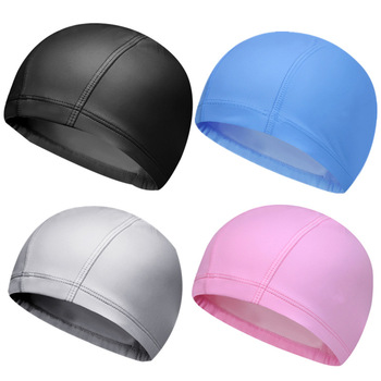 Unisex Multi Colors Fashionable Elastic Waterproof PU Coated Swim Caps Polyester Swim Cap